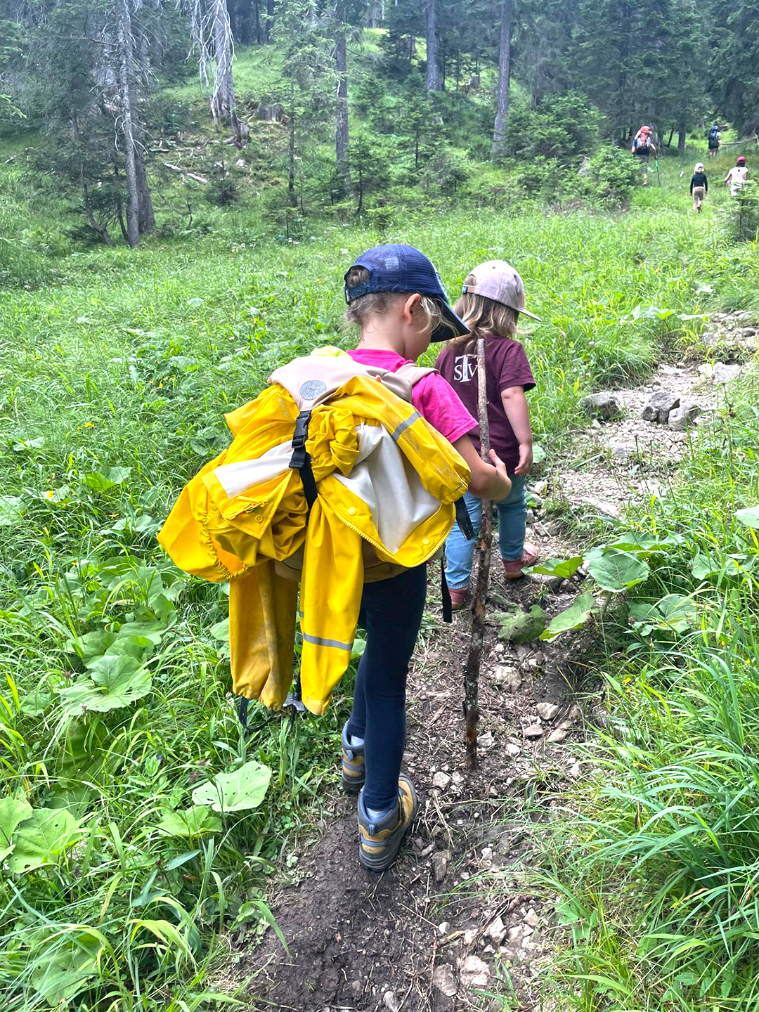 Dank Spaghetti mit Pesto warn dann alle satt, vom Wandern warn die Kinder ganz schön platt.